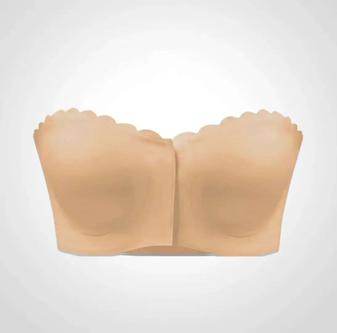 Introducing the scalloped neckline strapless bra, a perfect blend of elegance and comfort designed for the modern woman. With its unique scalloped edge, this bra adds a touch of sophistication to your lingerie collection while ensuring a secure fit. Ideal for wearing under a variety of outfits, from off-the-shoulder tops to elegant dresses, this bra provides a seamless silhouette that enhances your natural shape without compromising on support.